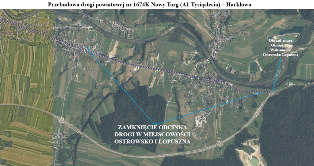 W związku z tym droga powiatowa na odcinku Ostrowsko – Łopuszna będzie czasowo zamknięta dla ruchu pojazdów. Zalecany objazd przez Obwodnicę.